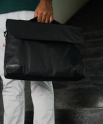 A clean and lightweight carrier for your everyday essentials. Designed to hold your laptop and a few extras like your charger and notebook, this bag is ideal for your daily office commute or quick coffee shop sessions. Made from recycled plastic bottles with a long adjustable strap and a slim silhouette, it fits right into modern routines.